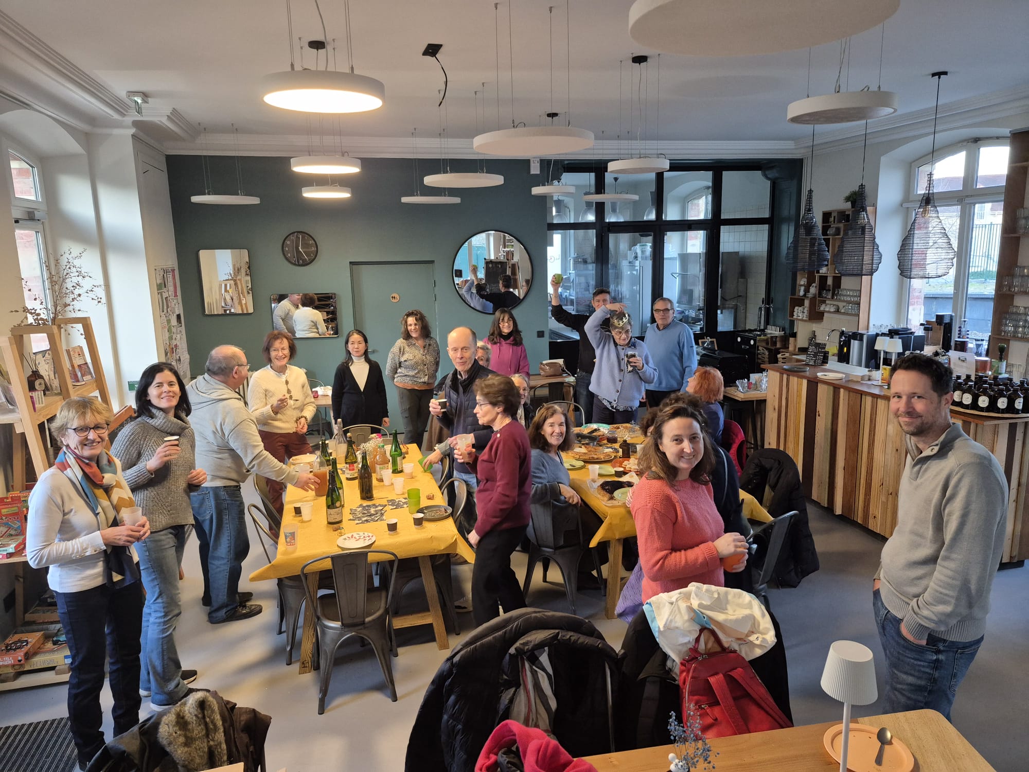 - Une vingtaine d’adhérents et amis se sont retrouvés à La Gare pour un moment convivial autour de la galette (photo ICI). Ce fut l’occasion de déployer la toute nouvelle oriflamme à nos couleurs (photo ICI).